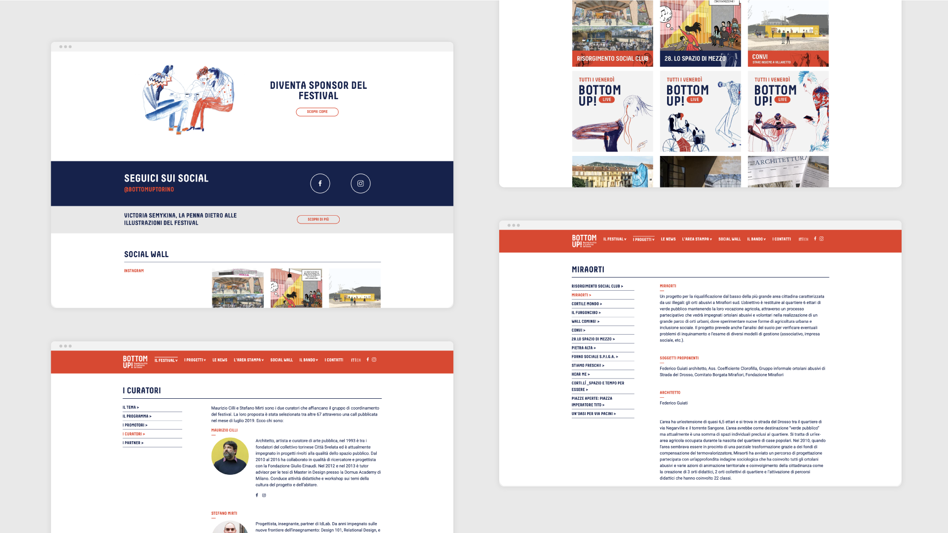 Maurizio Cilli e Stefano Mirti sono i due curatori del festival con cui abbiamo collaborato per creare l’identità visiva di Bottom Up! insieme all’illustratrice Victoria Semykina.