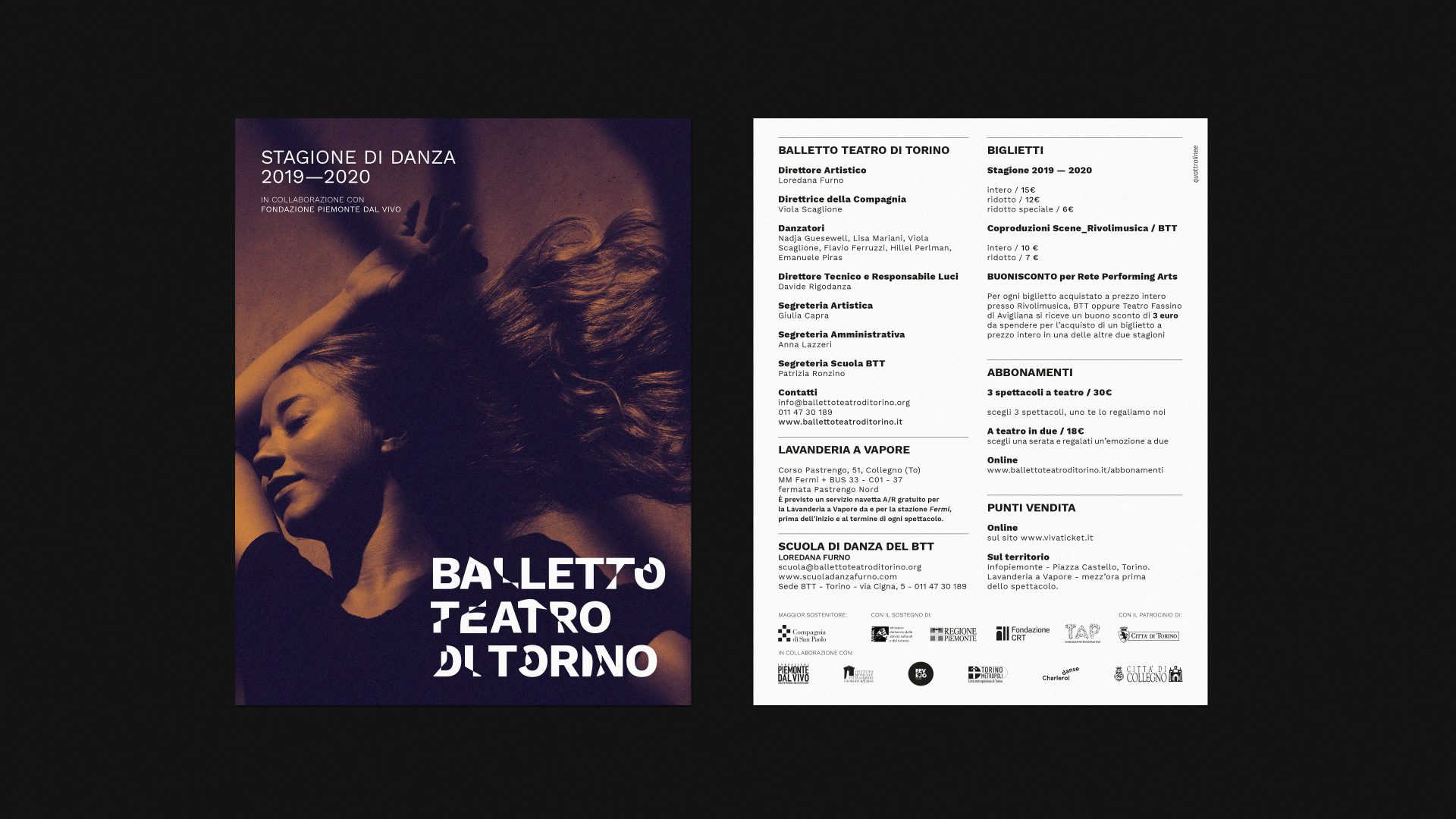 Per il quarto anno abbiamo accompagnato Balletto Teatro Torino nella ricerca di una nuova immagine per la stagione di danza. Da sempre la compagnia ha posto molta attenzione alla sperimentazione, non solo nella ricerca dei nuovi spettacoli da inserire all’interno della stagione di danza, ma anche nell’identità visiva.