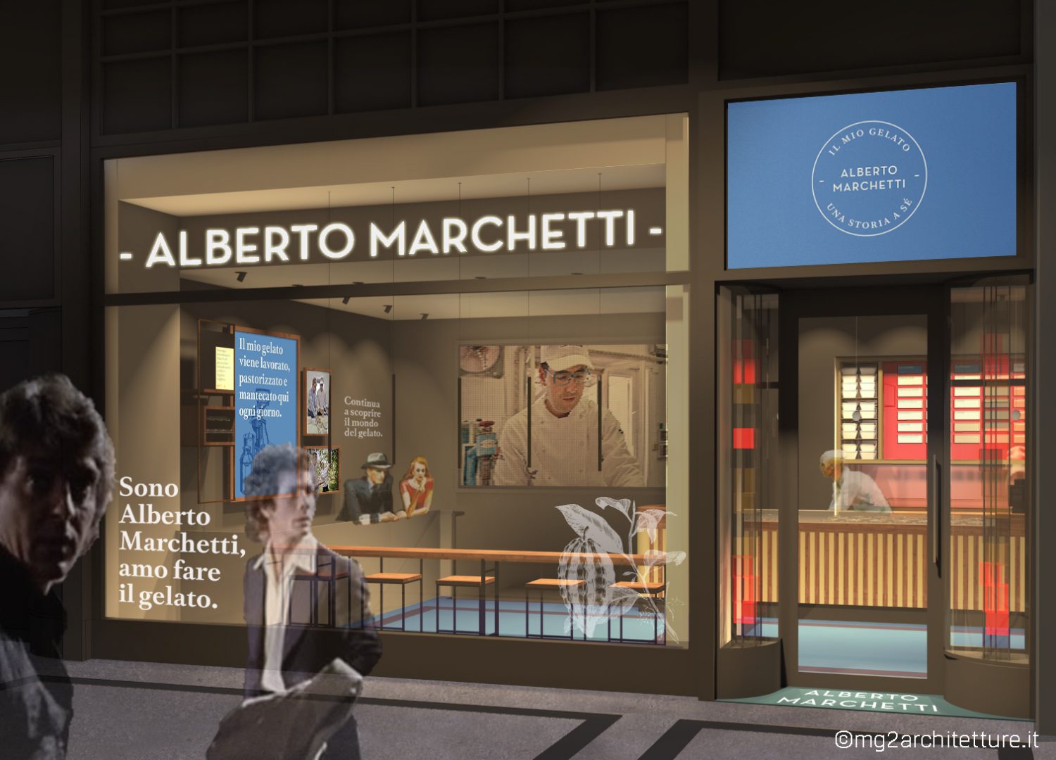 Casa Marchetti è uno spazio innovativo, dove il cliente può vivere un’esperienza immergendosi in una gelateria tradizionale con un approccio contemporaneo. Con questa premessa Alberto Marchetti decide di aprire il suo Concept Store, che sarà il punto di riferimento per l’interno brand (ad oggi si contano cinque punti vendita). Casa Marchetti è un luogo dove i clienti possono vivere il gelato, in una struttura distribuita su due piani dedicata alla vendita ed al racconto del gelato.