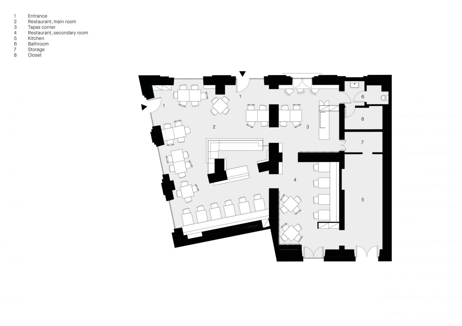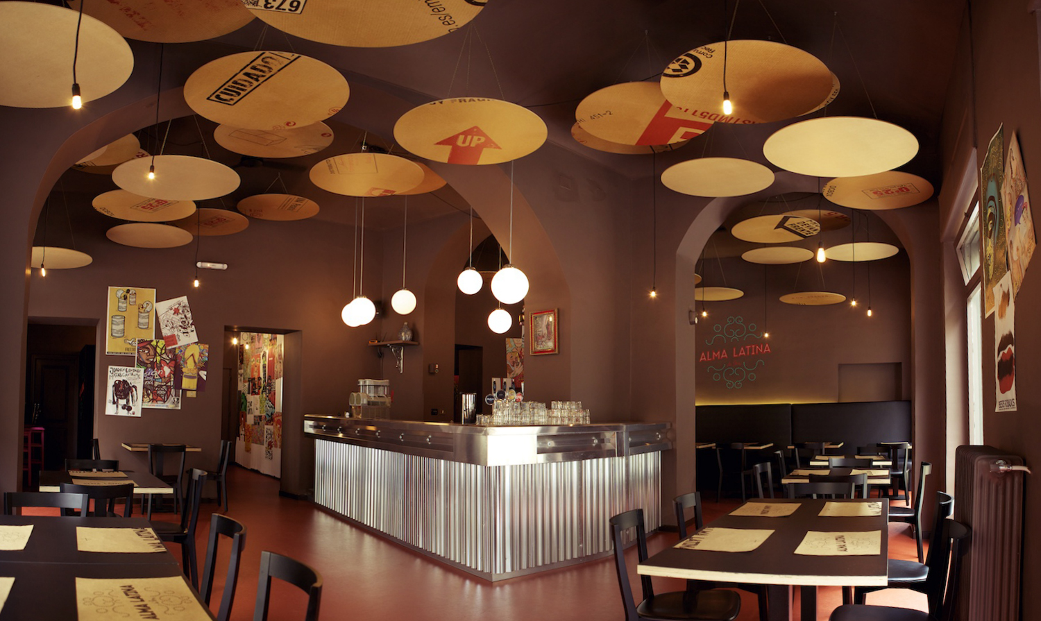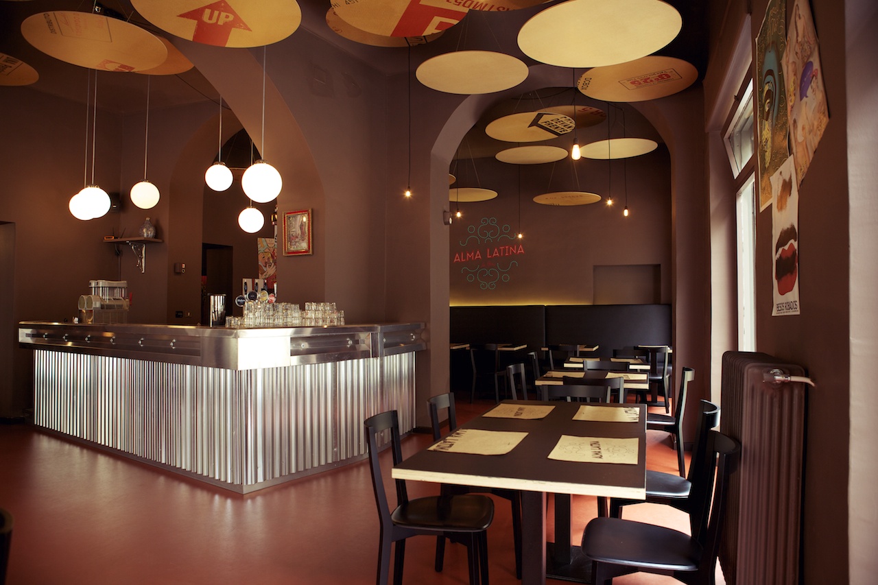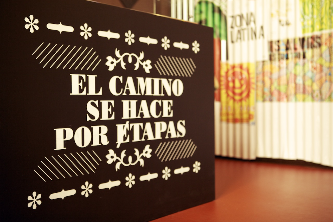 In the other two spaces the corrugated metal were used as vertical surfaces for Latin American’s collages and stencils creating a new Tapas corner. A strong concept, an accurate materials choice and a close relation between architecture and graphic design created an easy-going atmosphere perfect to allow the food speaks for itself.