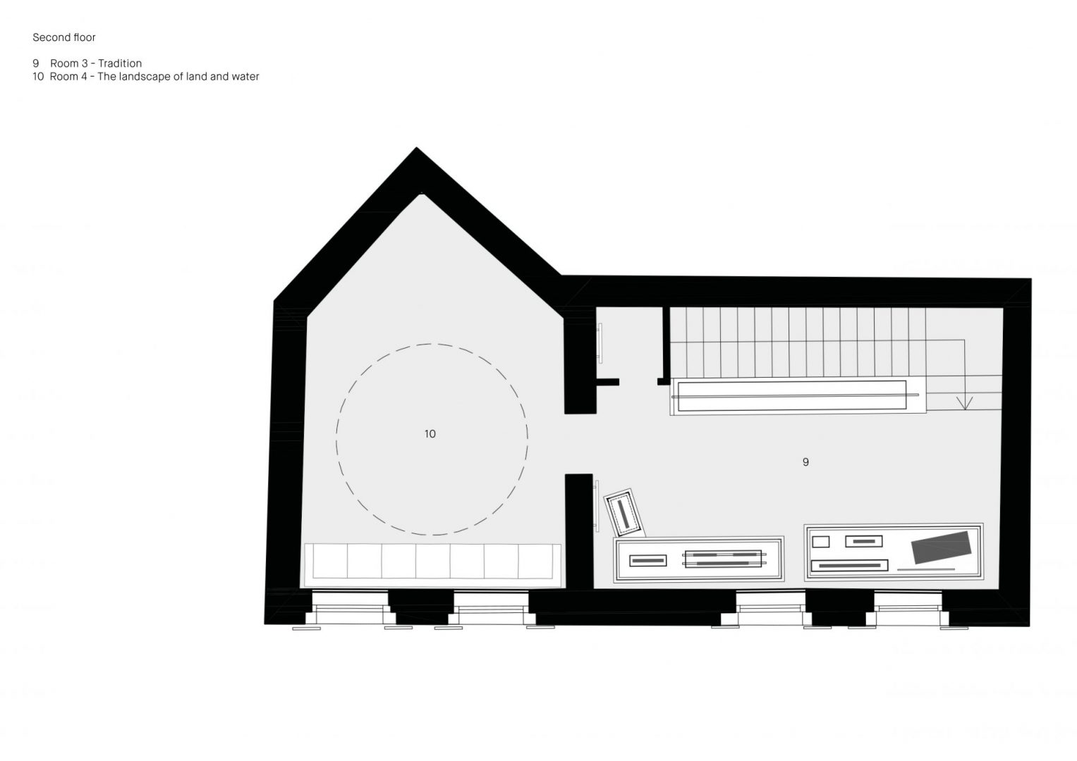 The museum path is distributed in three floors. The staging project highlights the contents through the use of non invasive supports and technical lighting system.