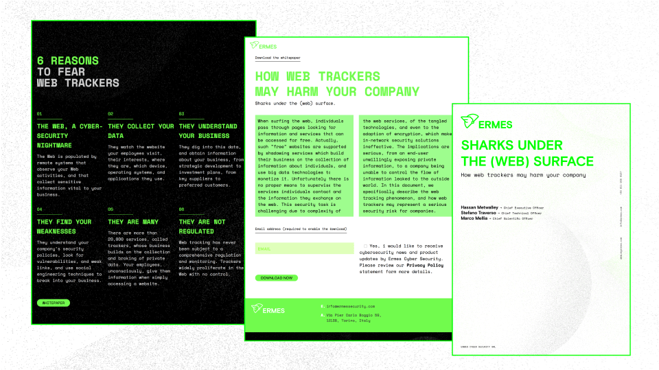 La comunicazione è stata costruita con l’obiettivo di sensibilizzare il target dell’azienda al tema della cybersecurity. Il concept visuale del sito web e del video gioca sul contrasto tra i rischi legati alla presenza di web tracker online e la soluzione offerta da Ermes Cyber Security. I colori, le font e lo storyboard del video richiamano all’immaginario del cyberspazio e alle sue più recenti evoluzioni in ambito cinetelevisivo.