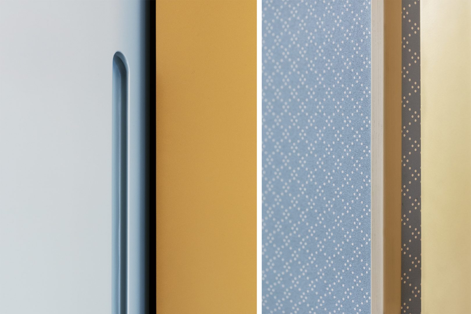 Le forme pure e le cromie eleganti si accostano a materiali classici interpretati in modo contemporaneo.