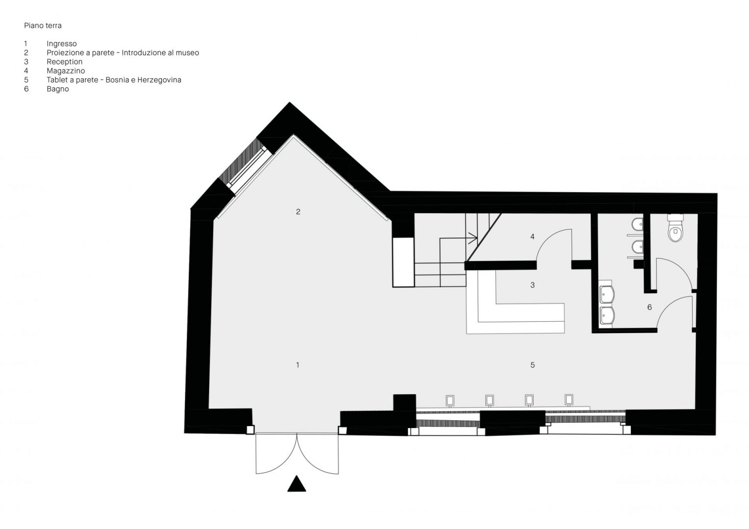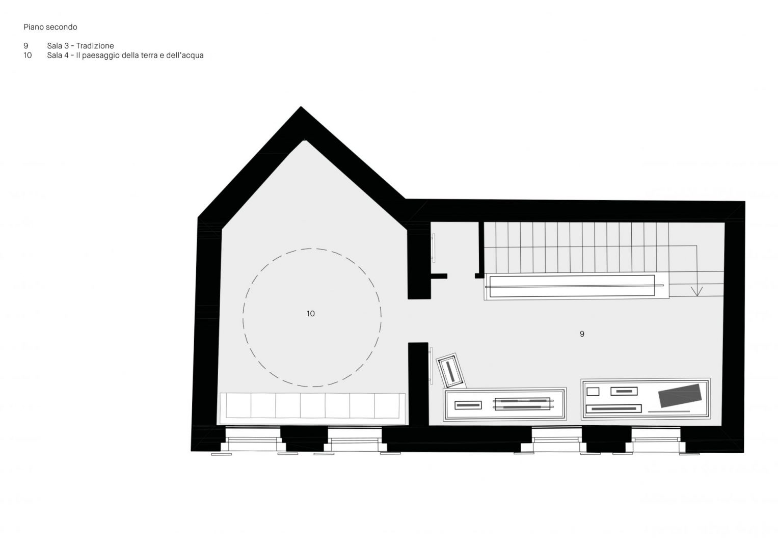 Il percorso museale è organizzato su tre piani. Il progetto di allestimento pone l’attenzione sui contenuti tramite supporti poco invasivi ed un sistema di illuminazione tecnico.