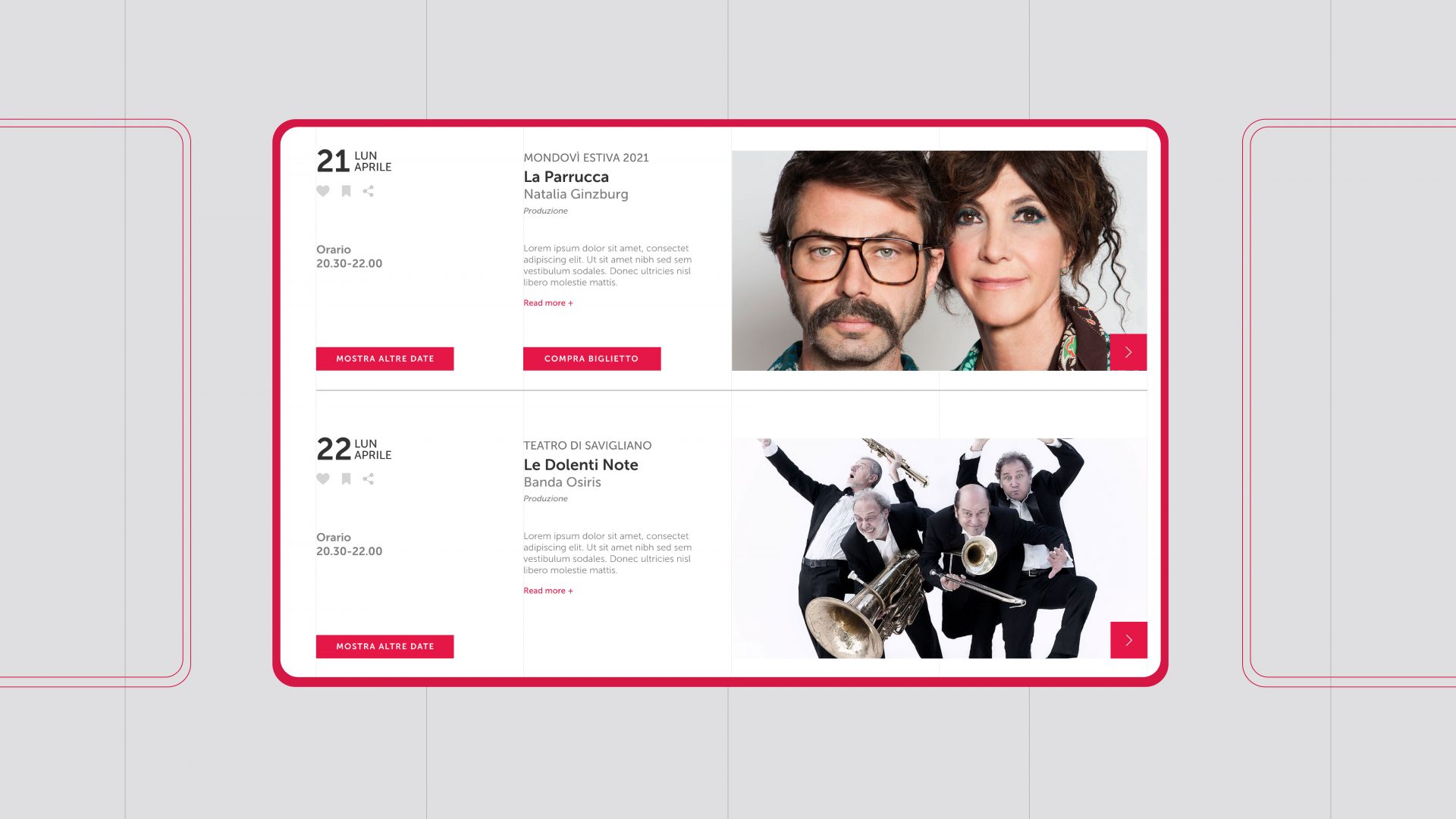 Una particolare attenzione è stata dedicata alla fruizione degli spettacoli on demand creando un vero e proprio catalogo navigabile per titoli ed episodi. Rinasce così OnLive un particolare prodotto della Fondazione creato in tempi di emergenza e implementato nel nuovo sito.