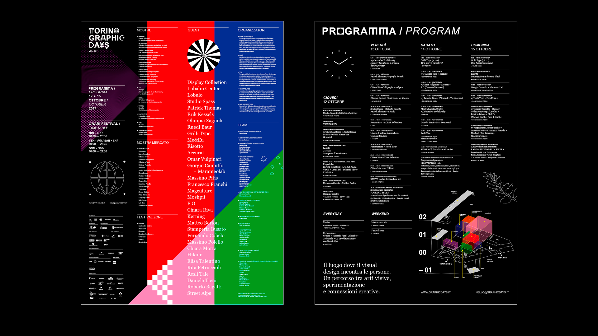 Dal brand alla comunicazione sociale, dalla grafica editoriale all’advertising, il festival incontra differenti settori disciplinari per restituire la ricchezza e la varietà del graphic design, individuando gli elementi che sono allo stesso tempo espressione di unicità e testimoni di universalità.