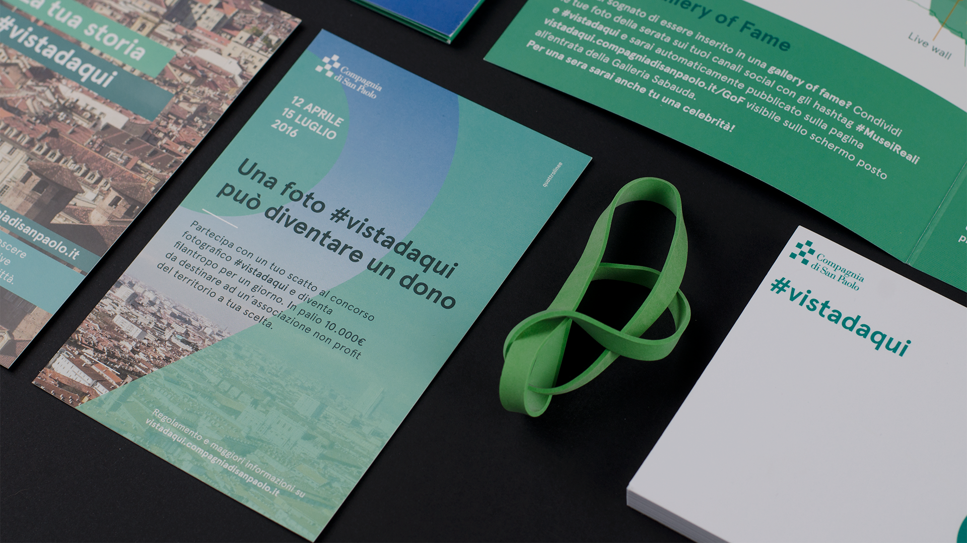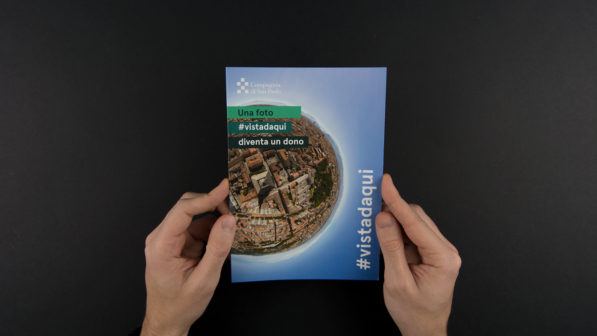 #vistadaqui è un progetto di comunicazione transmediale in cui i cittadini sono invitati a riscoprire la Città di Torino e ammirarne i cambiamenti con occhi nuovi: prima navigando una foto a 360° in cui scoprire i principali progetti in cui la fondazione Compagnia di San Paolo opera e ha operato, poi fornendo il proprio punto di vista attraverso un concorso fotografico.