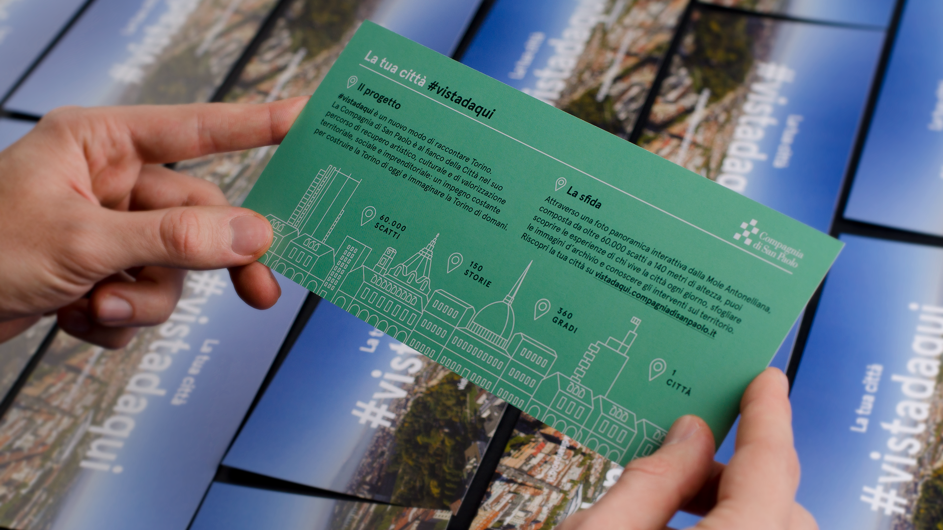 Compagnia di San Paolo ha chiesto ai cittadini di immortalare la propria visione di Torino attraverso uno scatto e una breve didascalia, il risultato è un racconto della città fatto dalle persone che la vivono ogni giorno. In 700 hanno risposto pubblicando 1400 fotografie sul sito e sui social con l’hashtag #vistadaqui.