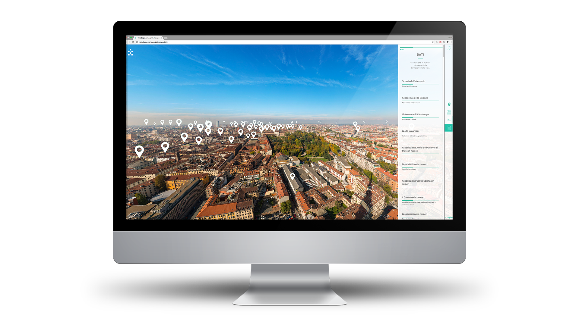 Nel sito di Compagnia San Paolo gli utenti possono navigare una foto della città di Torino a 360° scattata dalla Mole Antonelliana e approfondire gli interventi della Compagnia. Il sito si inserisce nel processo di rinnovamento della comunicazione di Compagnia che vuole offrire uno spazio alle storie che compongono il tessuto sociale della città.
